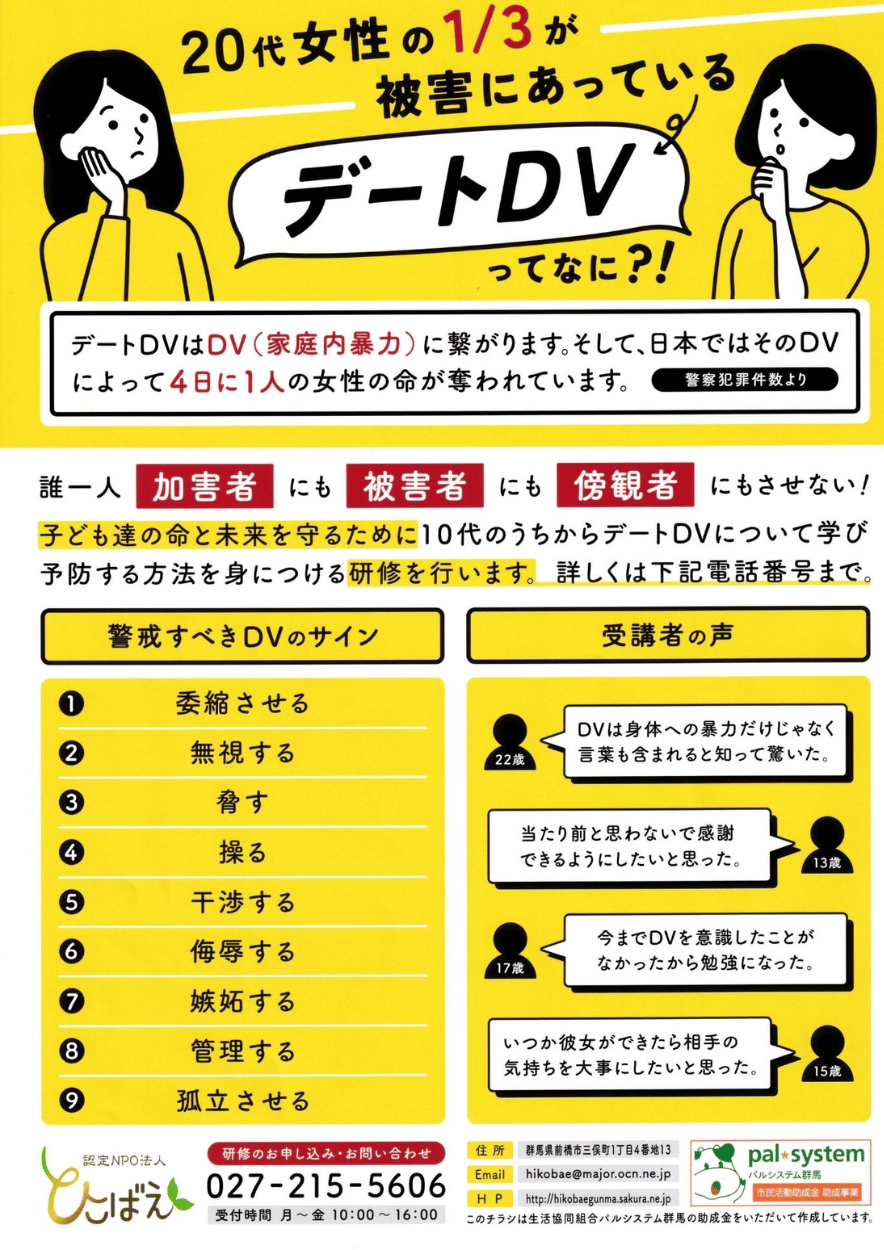 ※支援者・支援をしたい方向けのデートDV防止講座を行います。詳細はこちら。